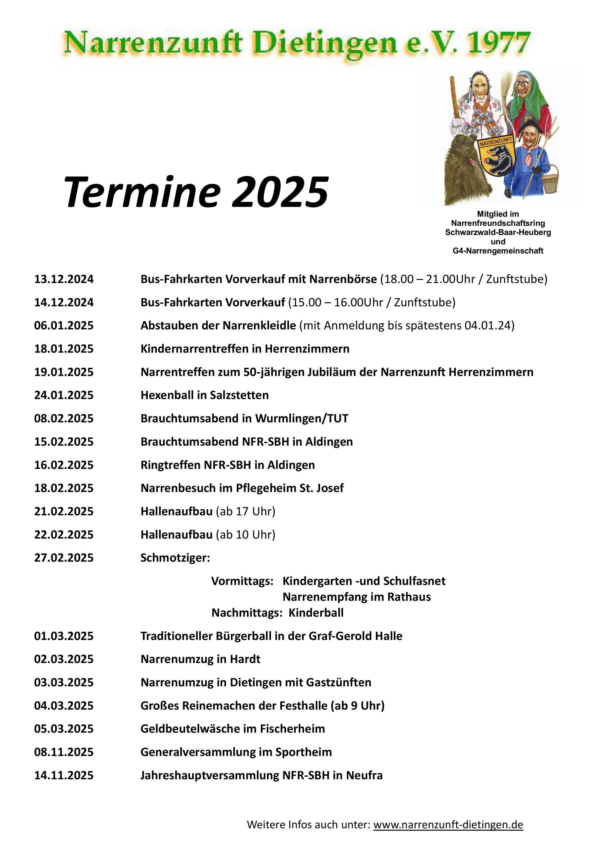 Alle Änderungen bezüglich Abfahrtszeiten, Abfahrtsplätzen oder anderer relevanter Informationen werden über die WhatsApp-Community der Narrenzunft bekannt gegeben.