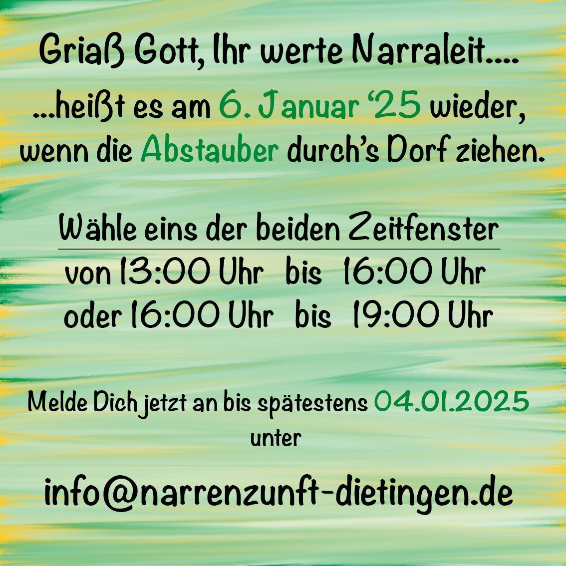 Auch wird das Abstauben am 06.01.2025 wieder mit